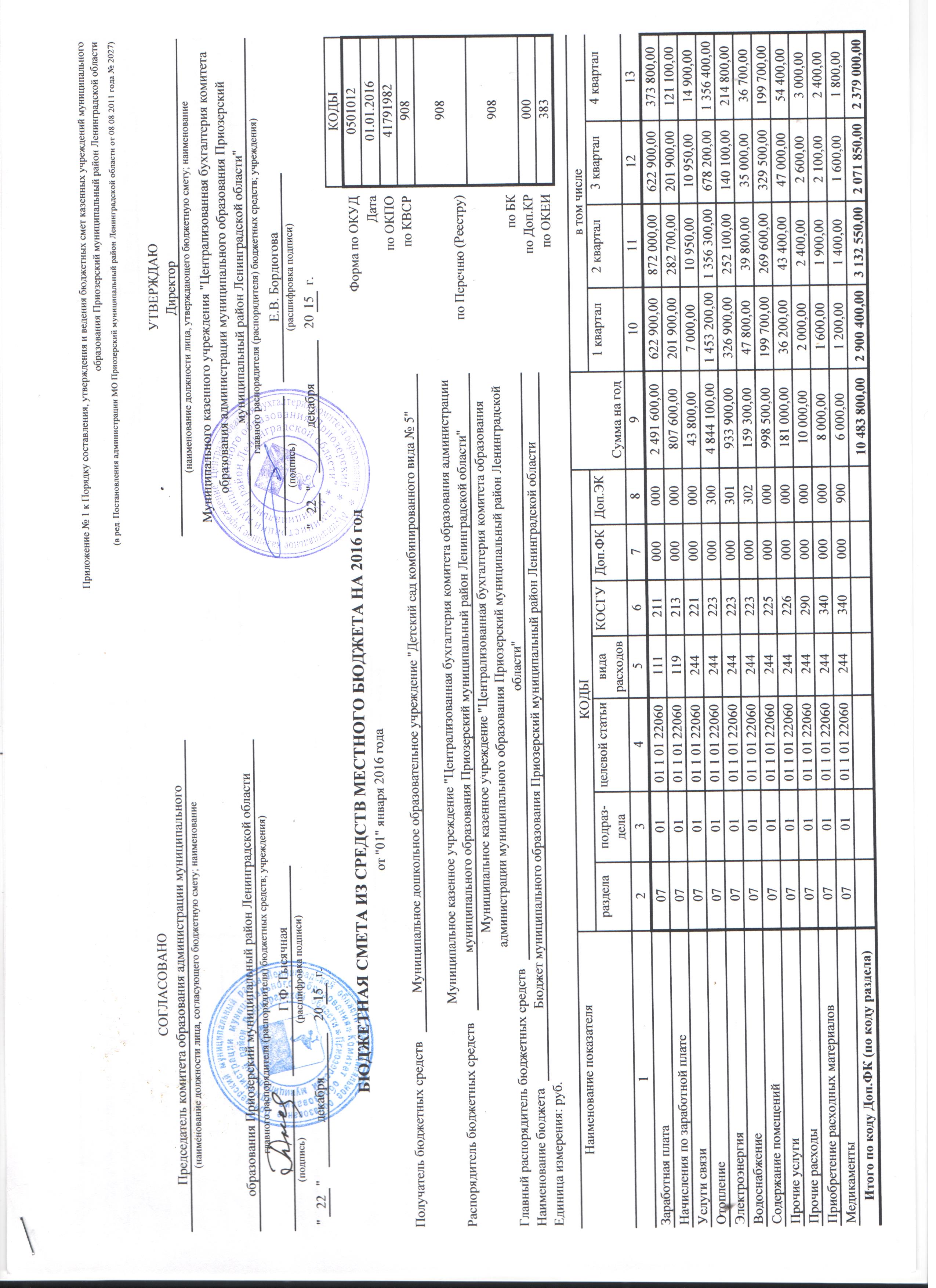 Бюджетная смета из средств местного бюджета на 2016 год.