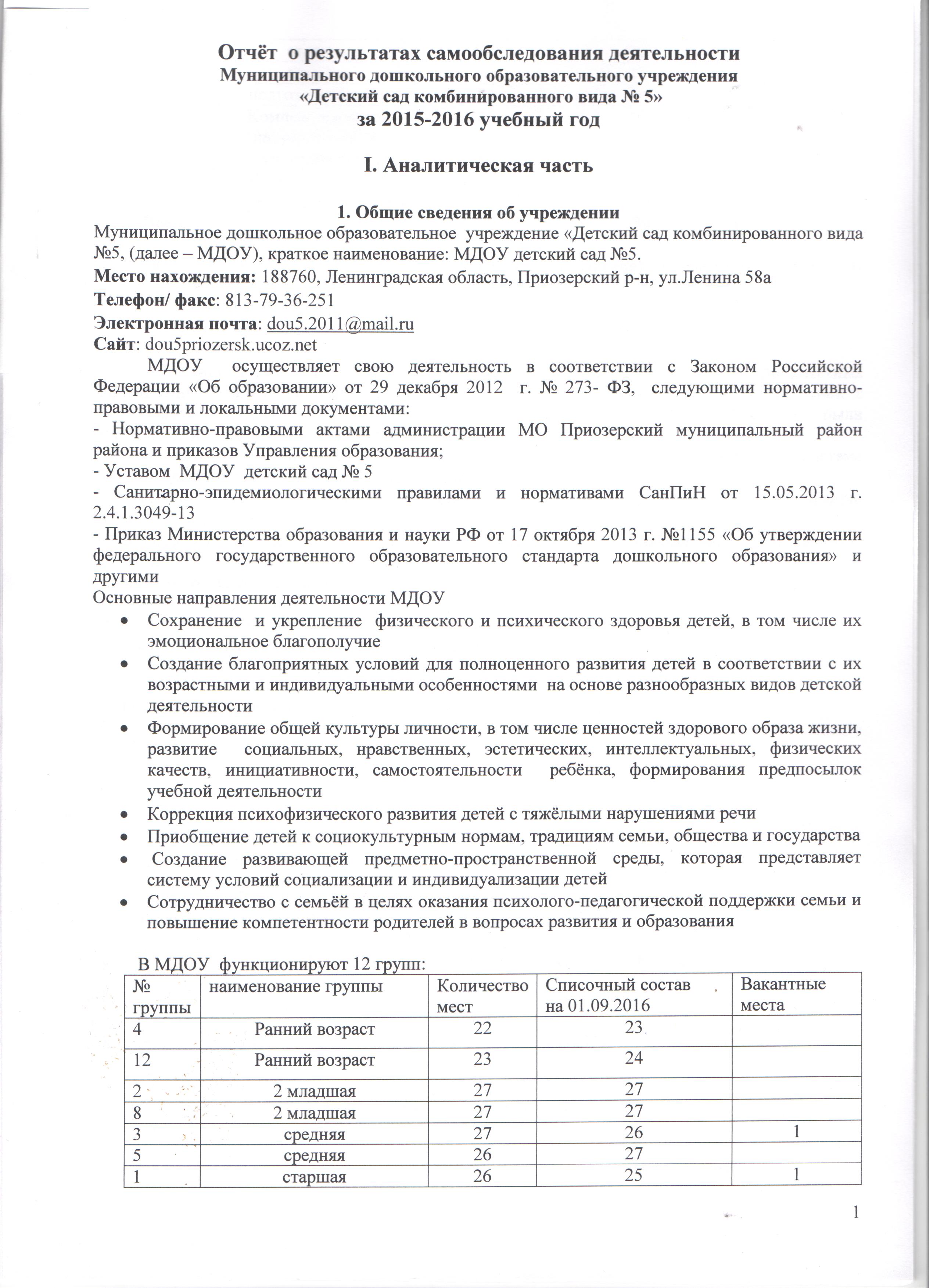 Отчет о результатах самообследования за 2015-2016 учебный год